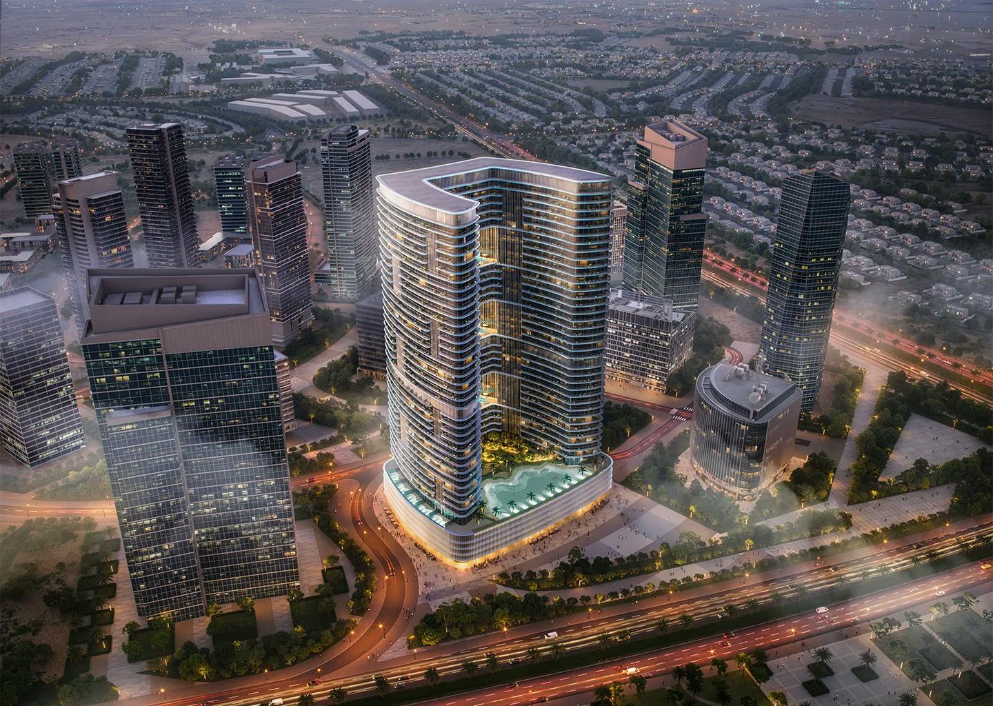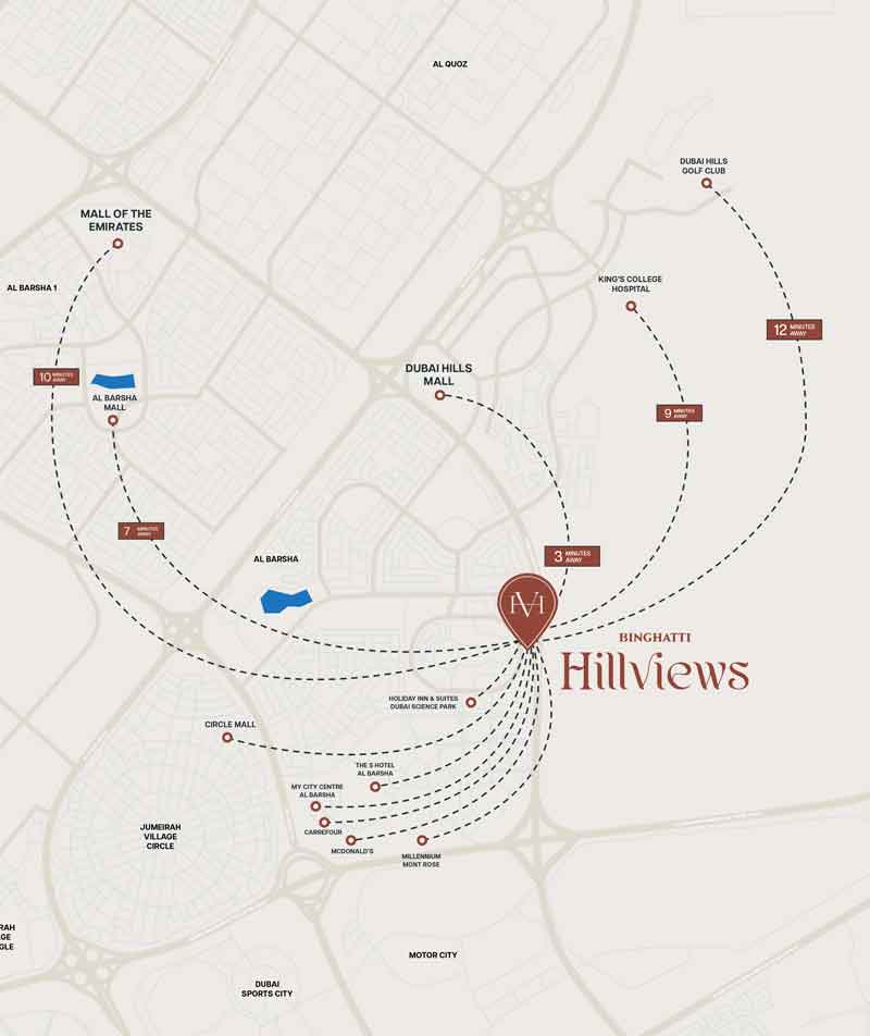 Binghatti Hillviews is a 37 floor residential tower in Dubai Science Park, offering panoramic views of the city's dynamic landscape from all of its units. It offers 1,552 thoughtfully designed apartments to meet all different lifestyles and needs. Residents can also enjoy a strategic location, with convenient access to major roads and nearby entertainment areas.